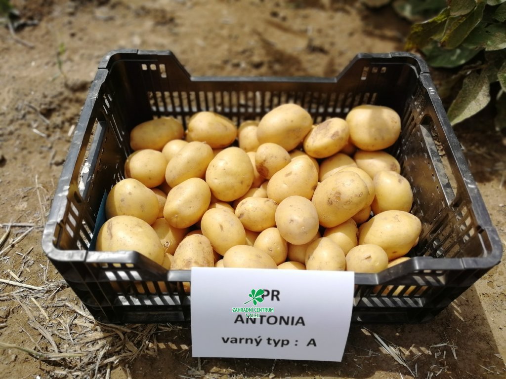 Antonia v sobě sdružuje vysokou výnosnost, chuťovou kvalitu i schopnost bezproblémového skladování, včetně výborného vzhledu a hladké slupky. Tím splňuje podstatné požadavky pro balení i vlastní obchodování. Hlízy jsou oválné až dlouze oválné se žlutě sytou dužninou. Má také velmi dobré schopnosti odolávat mechanickému poškození, virovým chorobám, černání a strupovitosti.