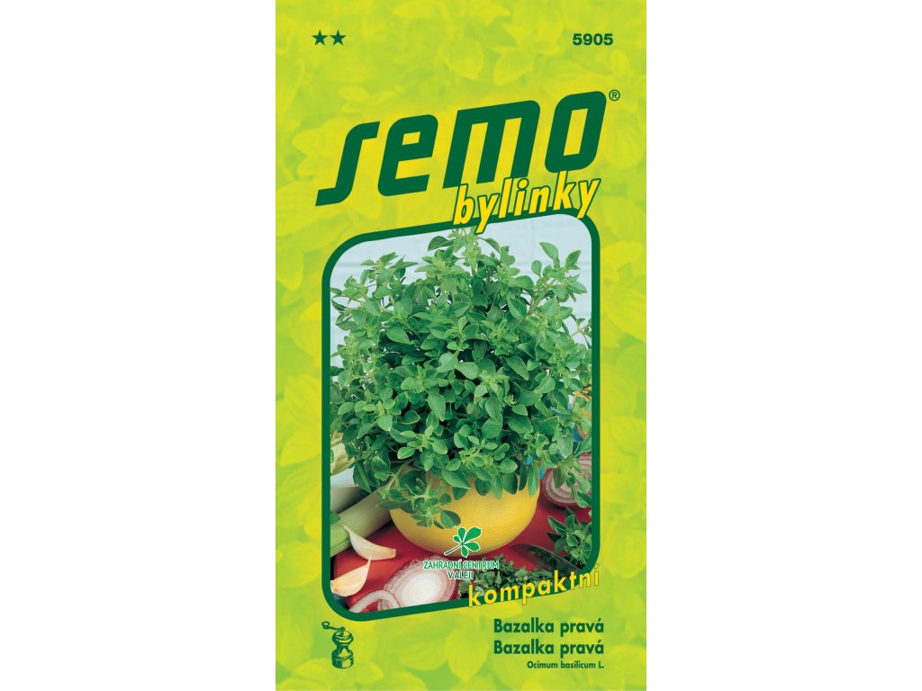 Keříčkovitě rostoucí letnička s výrazně aromatickou natí. Odedávna se pěstuje jako kořeninová, léčivá i medonosná rostlina. Semena vyséváme v březnu až dubnu na povrch substrátu a lehce přihrneme. Bazalka má ráda živnou, humózní zeminu namíchanou s rozloženým hnojem. Pozor – mladé rostlinky v příliš hustých výsevech zahnívají. Vysazujeme v květnu na chráněné místo s plným sluncem. Pravidelně