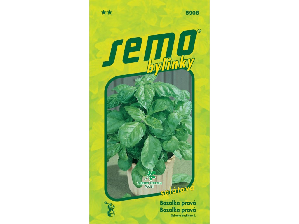 Keříčkovitě rostoucí letnička s výrazně aromatickou natí. Odedávna se pěstuje jako kořeninová, léčivá i medonosná rostlina. Semena vyséváme v březnu až dubnu na povrch substrátu a lehce přihrneme. Bazalka má ráda živnou, humózní zeminu namíchanou s rozloženým hnojem. Pozor – mladé rostlinky v příliš hustých výsevech zahnívají. Vysazujeme v květnu na chráněné místo s plným sluncem. Pravidelně