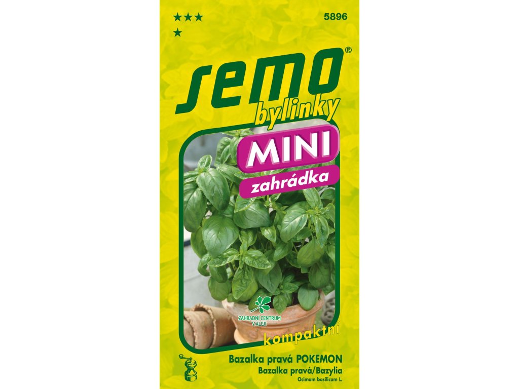 POKEMON - kolekce MINI ZAHRÁDKA - velmi kompaktní bazalka, s krátkými internodii Genovese typu. Silné listy mají intenzívní zelenou barvu. Má vynikající aroma a chuť. Odrůda je vhodná k pěstování v květináčích po celý rok. Osivo je bez „Fusarium oxysporum“ (úředně testováno).