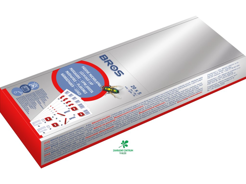 Bros mucholapka plochá (pásová) s účinkem po mnoho měsíců, která je vhodná k využití v obytných, hospodářských a veřejných prostorech. Balení obsahuje 5 ks.