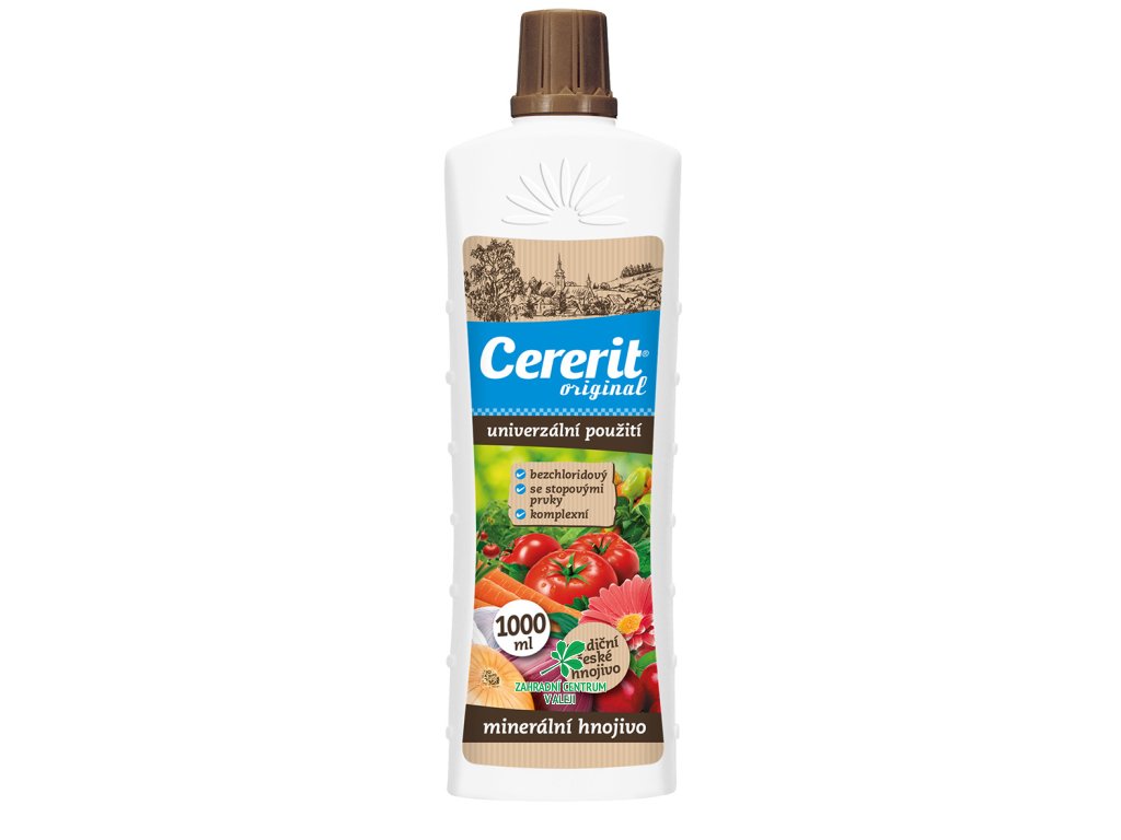 CERERIT je plnohodnotné kapalné univerzální hnojivo s obsahem mikroprvků. Má široké použití při hnojení okrasných rostlin, ovoce, zeleniny a také balkónových a pokojových rostlin. Podporuje zdravý růst rostlin a u květin i bohatou násadu květních poupat a následné kvetení.