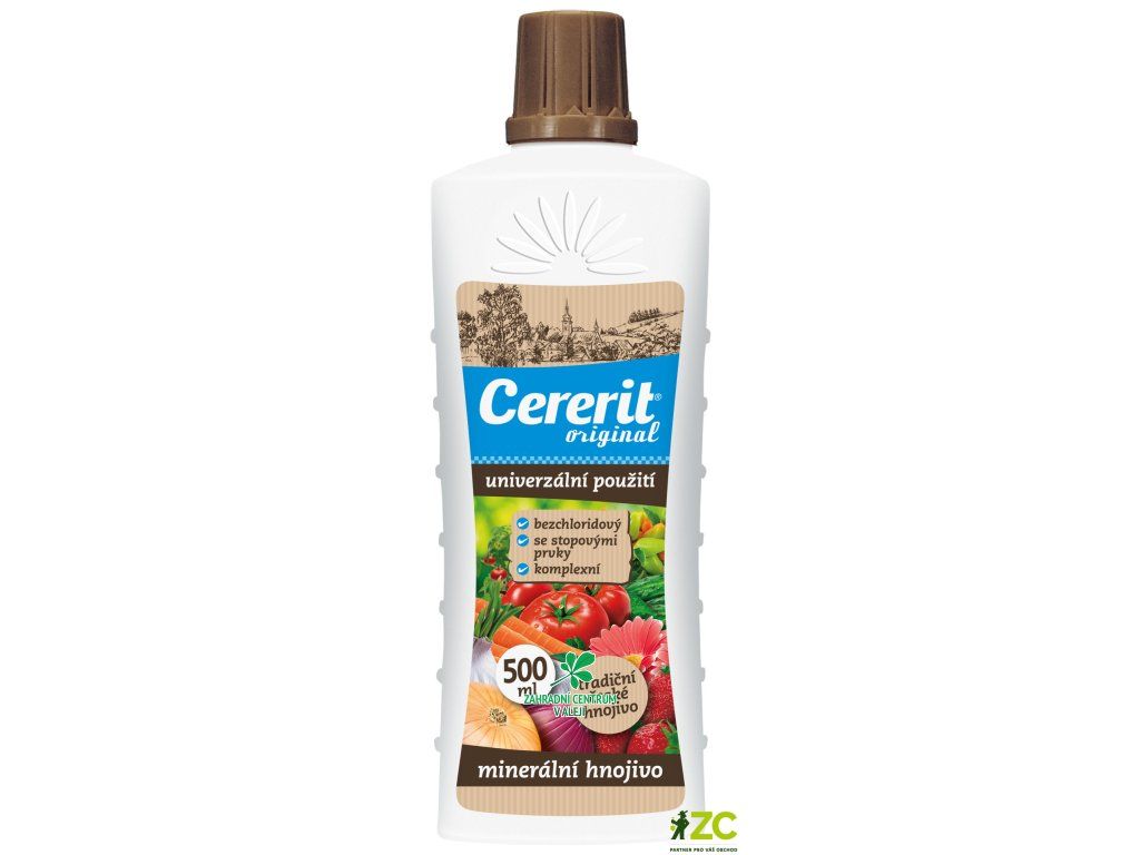 CERERIT je plnohodnotné kapalné univerzální hnojivo s obsahem mikroprvků. Má široké použití při hnojení okrasných rostlin, ovoce, zeleniny a také balkónových a pokojových rostlin. Podporuje zdravý růst rostlin a u květin i bohatou násadu květních poupat a následné kvetení.
