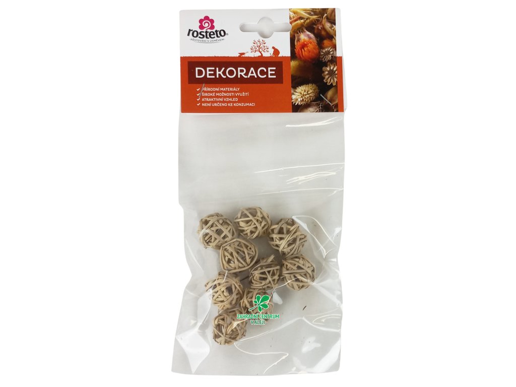 Sušená dekorace – proutěná ve tvaru kuliček v různém barevném provedení.