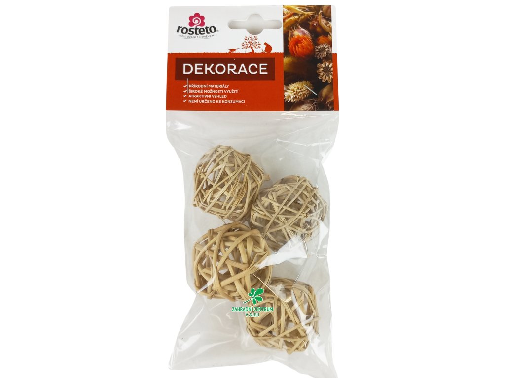 Sušená dekorace – proutěná ve tvaru kuliček v různém barevném provedení.
