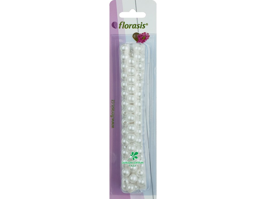 Dekorační umělohmotné navlékací perly v průhledné plastové krabičce na zavěšení, obsah 144 ks.