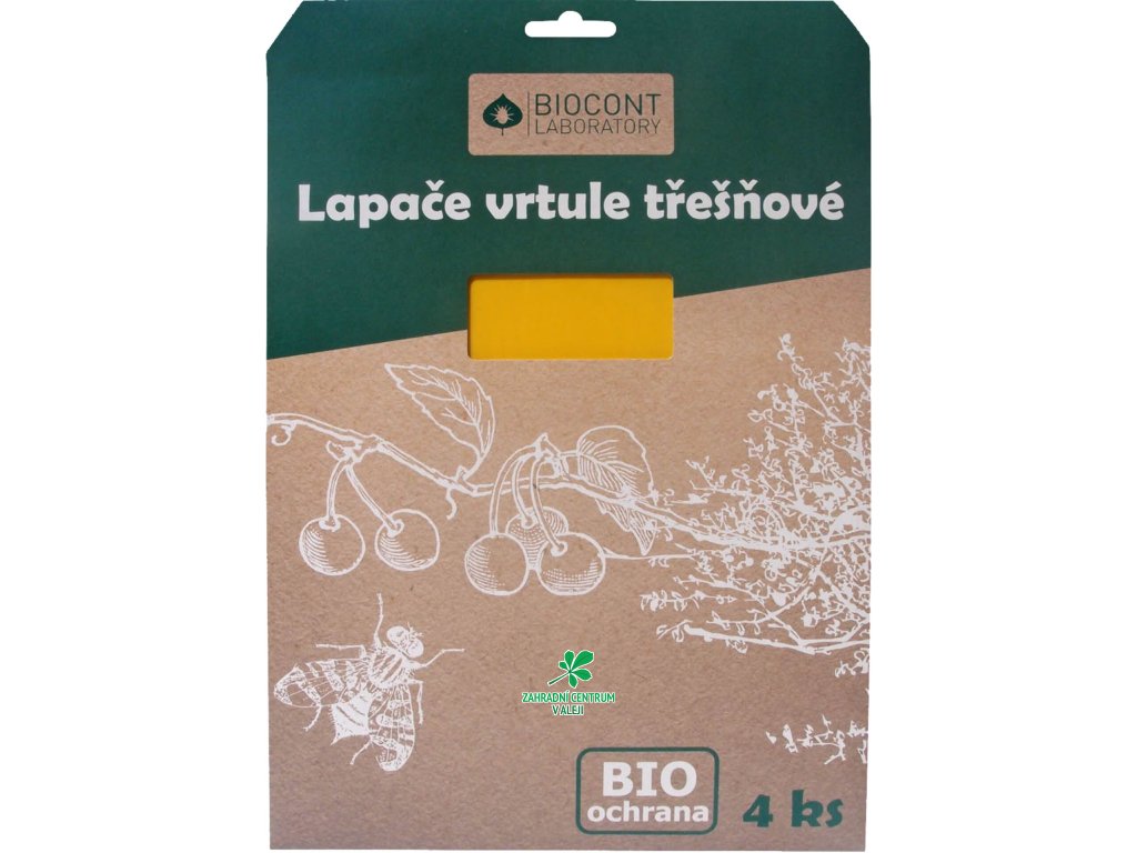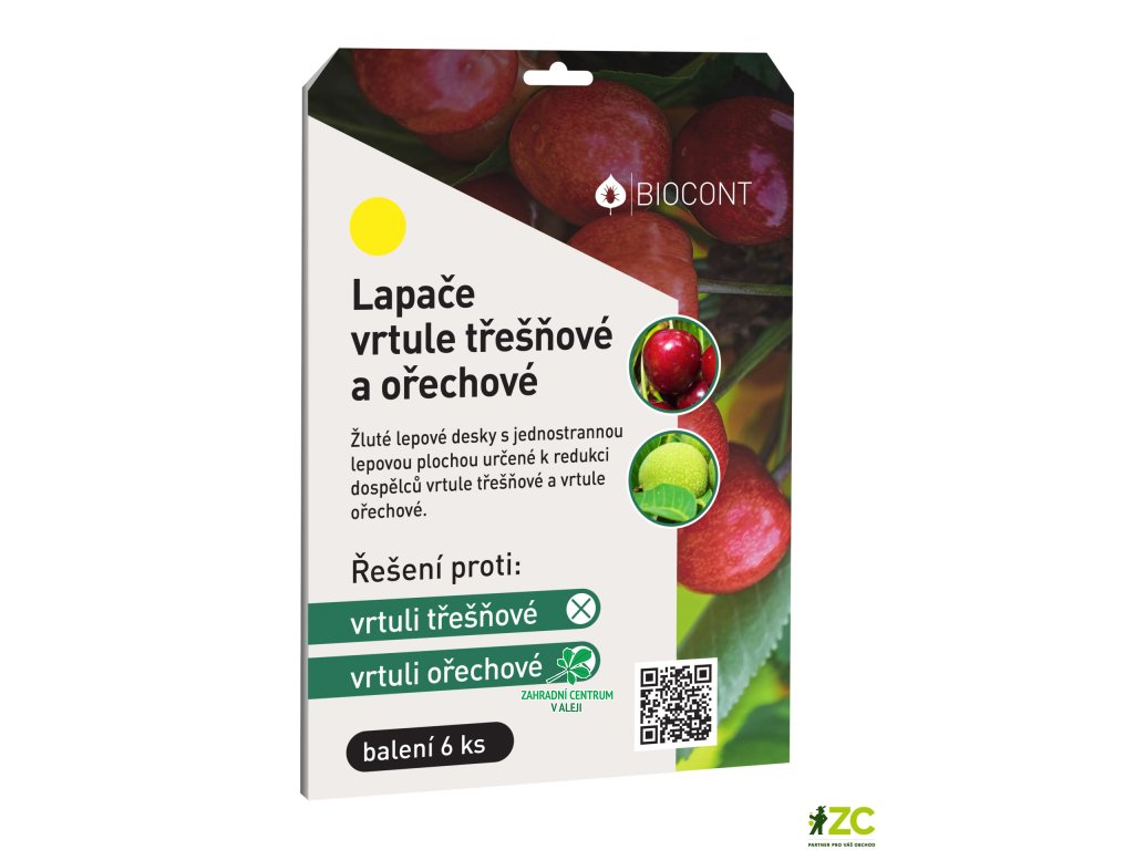 Dospělci vrtule třešňové jsou opticky lákáni zářivou barvou těchto lapačů. Protože vrtule naletují na lapače především ze spodní strany, je nutné lapače před vyvěšením vytvarovat dle návodu do prostorového válce. Odchytem dospělců vrtule třešňové ještě před vykladením vajíček výrazně snížíte červivost třešní. Vrtule třešňová je drobná, asi 3 - 4 mm dlouhá moucha s nápadně pestrými křídly. Samice kladou vajíčka na povrch zaměkajících třešní. Bělavé larvy způsobují červivost třešní. Pokud tyto lapače použijí i Vaši sousedé, bude celkový efekt tohoto způsobu ochrany ještě podstatně vyšší. Pokud je nesvinete, jsou tyto lapače vhodné také k biologické ochraně a signalizaci napadení skleníkových kultur molicemi, mšicemi, smutnicemi, vrtalkami a třásněnkami.