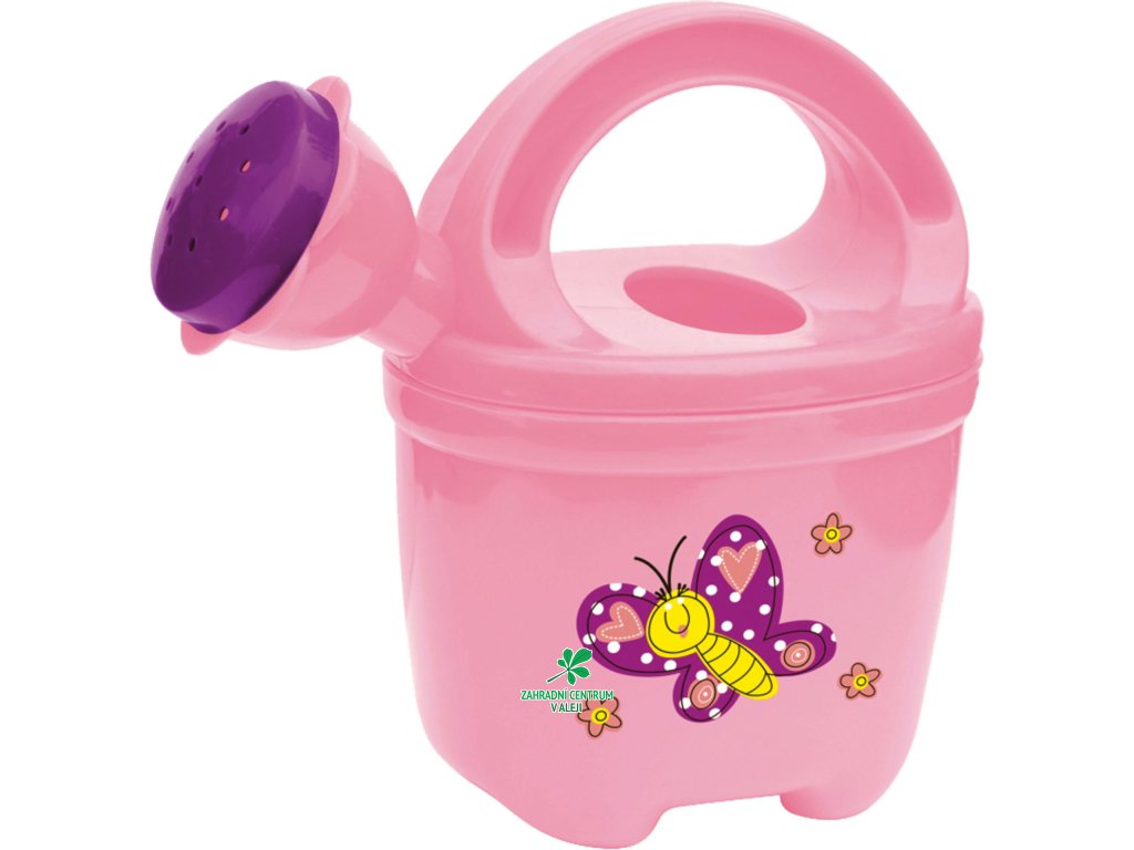 Dětská plastová konvička s kropítkem - růžová barva konvičky s obrázkem s dětským motivem.