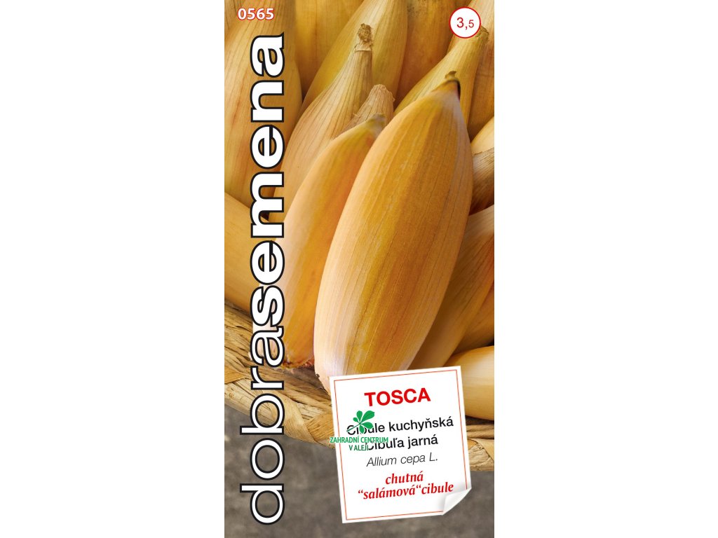 TOSCA - dlouze oválná cibule výborná pro krájení na plátky. Cibule mají příčný průměr kolem 5 cm, dorůstají délky 12 až 14 cm a dosahují hmotnosti 160 - 165 g. Suknice jsou pevné, středně hnědé. Skladovatelnost je velmi dobrá. Polopozdní odrůda s vegetační dobou kolem 130 dnů.