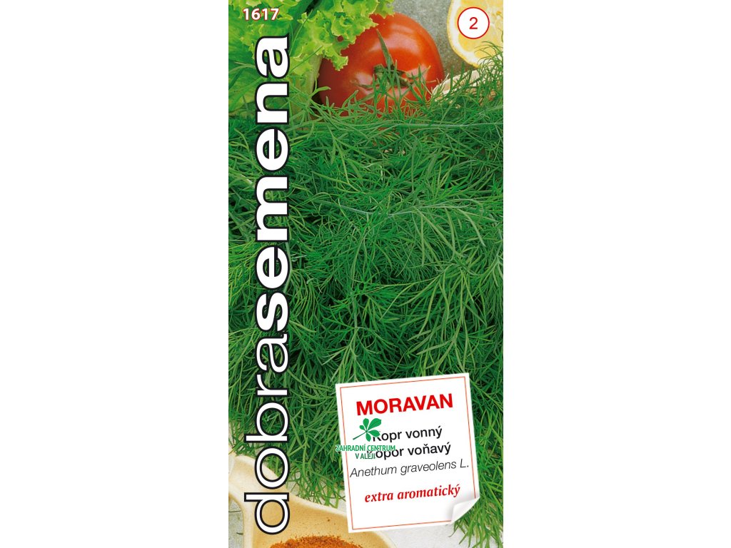 MORAVAN - aromatický, neskoro kvitnúci kôpor. Listy sú husté, tmavé, striebristo modrozelené. Má výraznú odolnosť proti predčasnému kvitnutiu, čo predlžuje čas zberu. Je to výnosná a spoľahlivá odroda na kuchynskú úpravu, konzerváciu aj sušenie. Vegetačná doba je 70 - 80 dní.