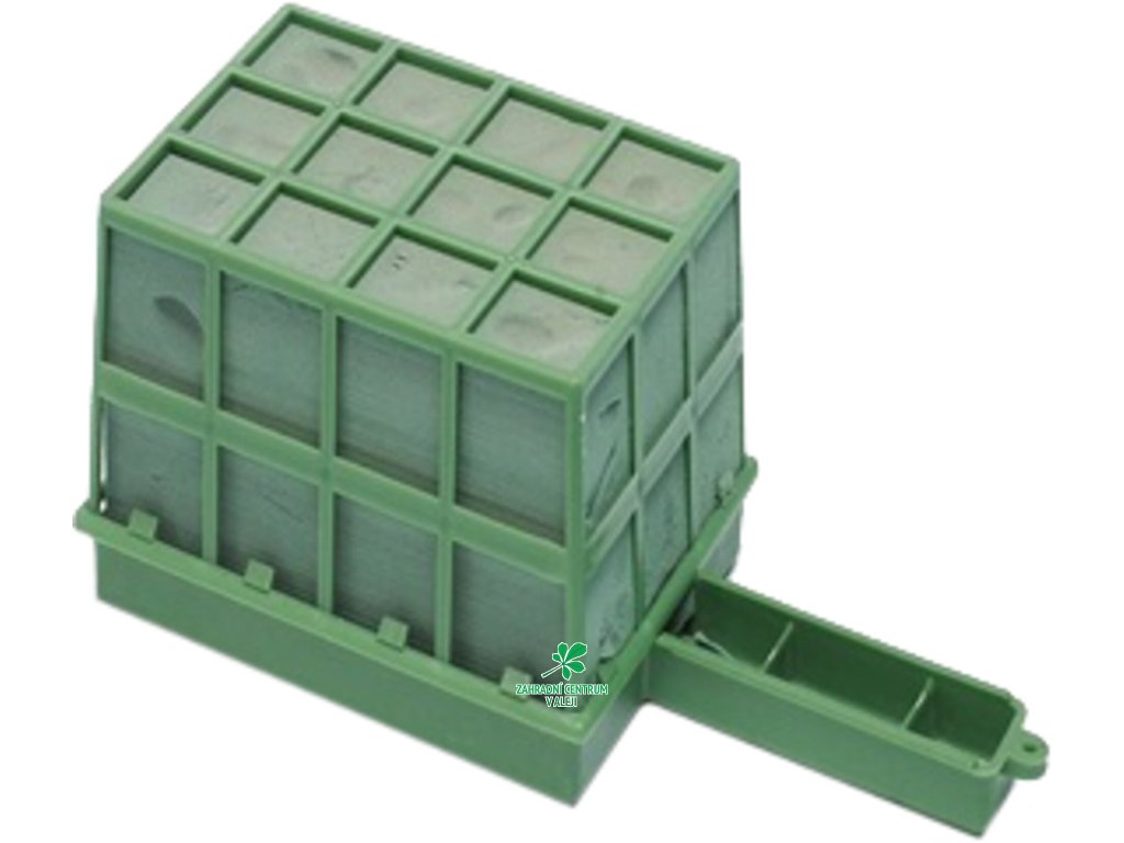 Aranžovací hmota vysoké kvality pro živé rostliny v plastovém držáku s úchyty a mřížkou.