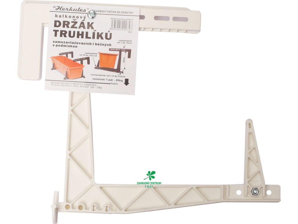 Stavitelný plastový držák truhlíků do šířky 19 cm. Nosnost jednoho páru je 20 kg ( truhlík do délky 60 cm ). Držák je vyroben z vysoce kvalitního plastu odolný proti slunečnímu záření a mrazu.