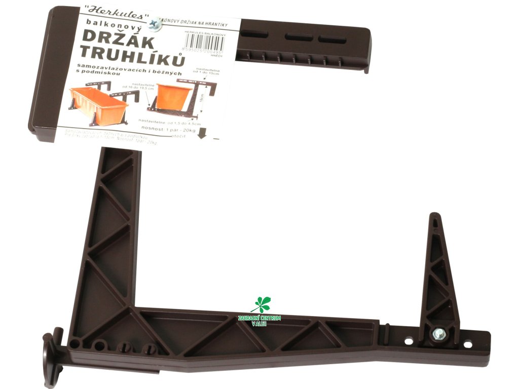 Stavitelný plastový držák truhlíků do šířky 19 cm. Nosnost jednoho páru je 20 kg ( truhlík do délky 60 cm ). Držák je vyroben z vysoce kvalitního plastu odolný proti slunečnímu záření a mrazu.