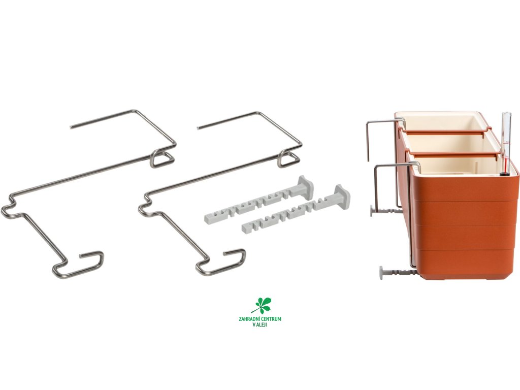 Kovový držák na truhlík Berberis. Součástí balení háků jsou i plastové vzpěry.