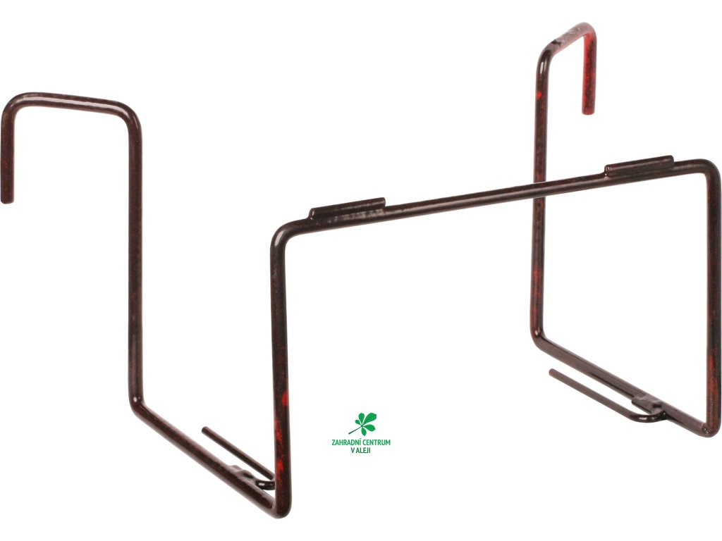 Kovový balkónový držák na truhlík Flora. Držák je 17 cm vysoký, 26 cm dlouhý a 18 cm hluboký. Nosnost 12 kg