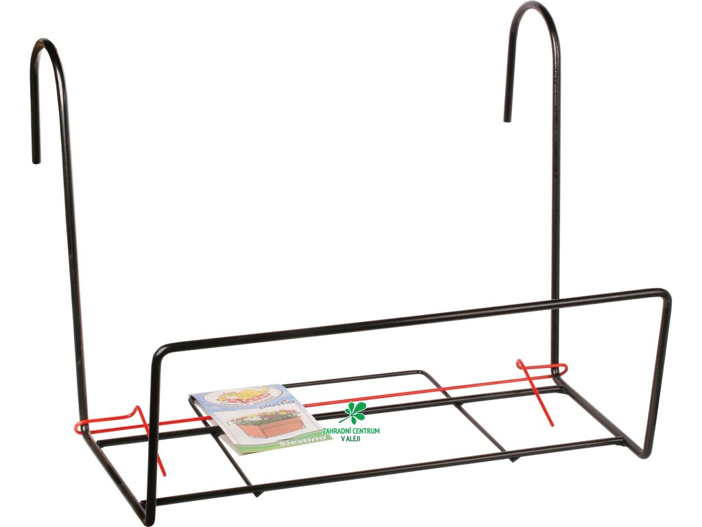 Kovový držák truhlíků Siesta. Šířka celého držáku je 35 cm a výška 24 cm. Šířka pro truhlík je 14 cm. Držák je vyroben s materiálu odolného proti povětrnostním vlivům.