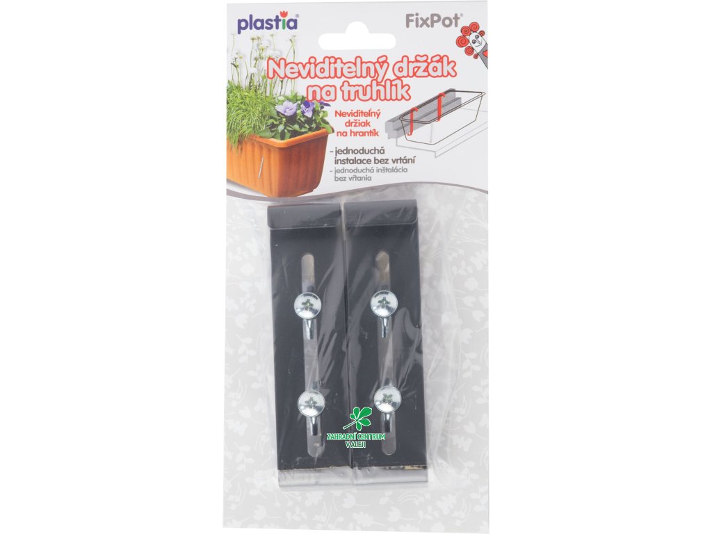 Umožňuje neviditelné uchycení truhlíku na parapetu bez vrtání do fasády. Zabraňuje spadnutí truhlíku při jeho přetížení nebo při špatných klimatických podmínkách. Držák je možné použít u většiny plastových oken. Držák Fixpot je určen pro výšku truhlíku 10 - 19 cm a pro délku do 60 cm, je-li délka více než 60 cm, použijte další držá k.