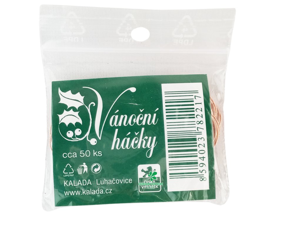 Vánoční závěsné háčky - poměděné, délka 5 cm. Balení obsahuje 50 ks.