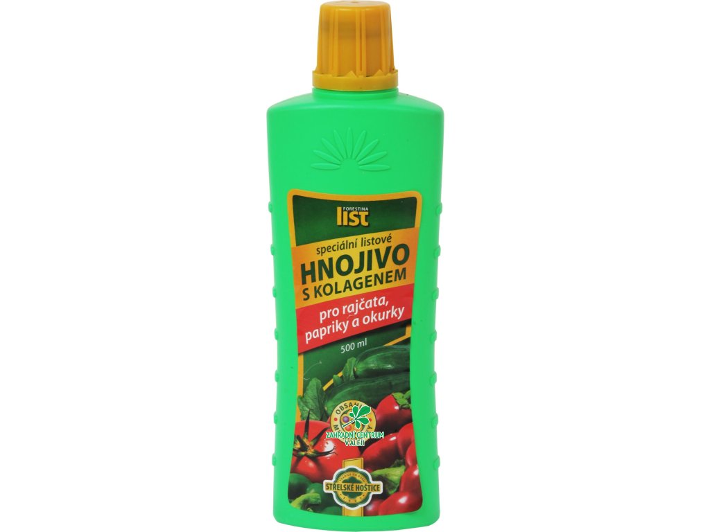 Hnojivo List je speciální listové hnojivo s kolagenem pro rajčata, papriky, okurky a další plodovou zeleninu.