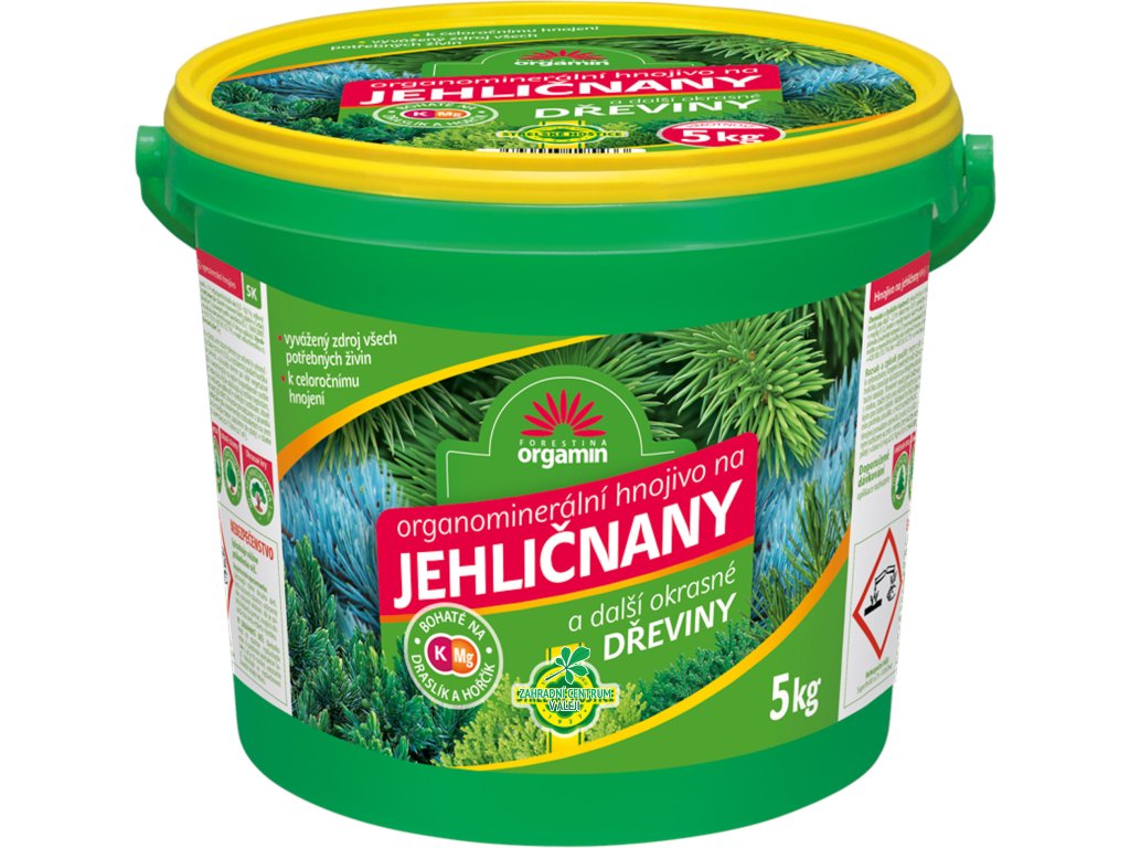 Hnojivo na jehličnany a jiné okrasné dřeviny je určené k celoročnímu hnojení rostlin. Obsah hlavních prvků ( N, P, K ) a významný podíl hořčíku zaručuje dostatečnou komplexní výživu jehličnanů a okrasných dřevin po celé vegetační období. Předností tohoto hnojiva, jehož významnou složkou je drcená a granulovaná rohovina, je pozvolné uvolňování draslíku obsaženého v rohovině. Poměrně vysoký podíl draslíku má příznivý vliv na lepší hospodaření rostlin s vodou, takže jsou odolnější nepřízni počasí a lépe odolávají i vyšším teplotám, typickým pro letní počasí.
