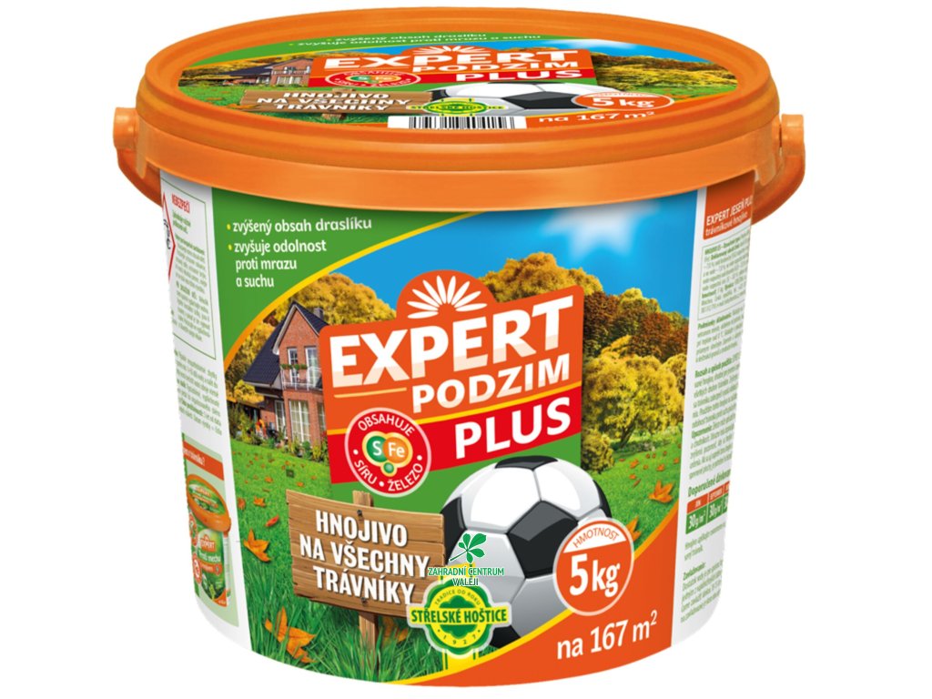Hnojivo EXPERT PODZIM PLUS je granulované hnojivo, vhodné pro podzimní a pozdní podzimní hnojení všech druhů trávníků. Vysokým obsahem draslíku se zabezpečí vysoká odolnost trávníku proti vymrzání a napadení houbovými chorobami, které se šíří hlavně pod sněhovou pokrývkou. Použitím tohoto hnojiva na začátku léta (červen), se zvýší odolnost trávníku proti suchu v průběhu letních měsíců. Jemná granulace, potlačování mechu v trávníku.