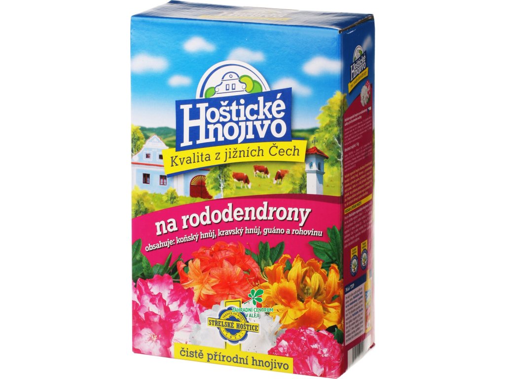 Hoštické organické hnojivo na rododendrony obsahuje fermentovaný kravský a koňský hnůj, drcenou a granulovanou rohovinu a přírodní guáno, pocházející z trusu mořských ptáků. Jedná se o čistě přírodní produkt, bez přídavku průmyslově vyráběných složek. Hnojivo dodává nejen potřebné živiny, ale výrazně aktivuje i půdní mikroflóru.
