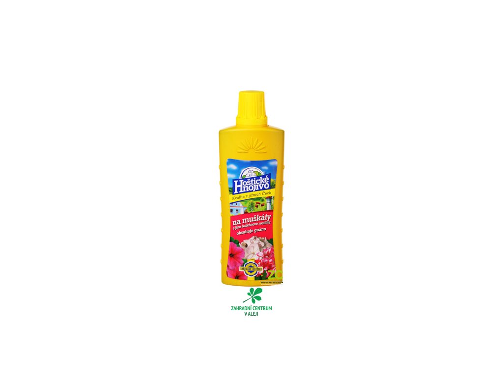 Hoštické kapalné hnojivo na muškáty a jiné balkónové rostliny s obsahem guána.