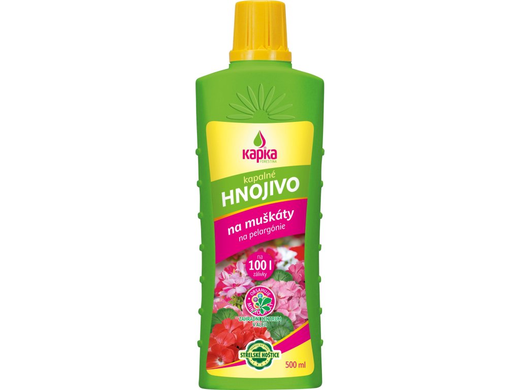 Kapka je rychle účinkující tekuté hnojivo určené na muškáty (pelargonie).