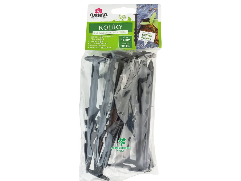 Praktický kolík z plastu k upevnění fólie, sítě, netkané textilie. Baleno v sadě po 10 ks.