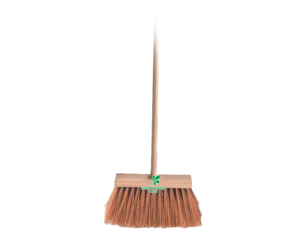 Koště zatloukané s dřevěnou násadou dlouhou 120 cm.