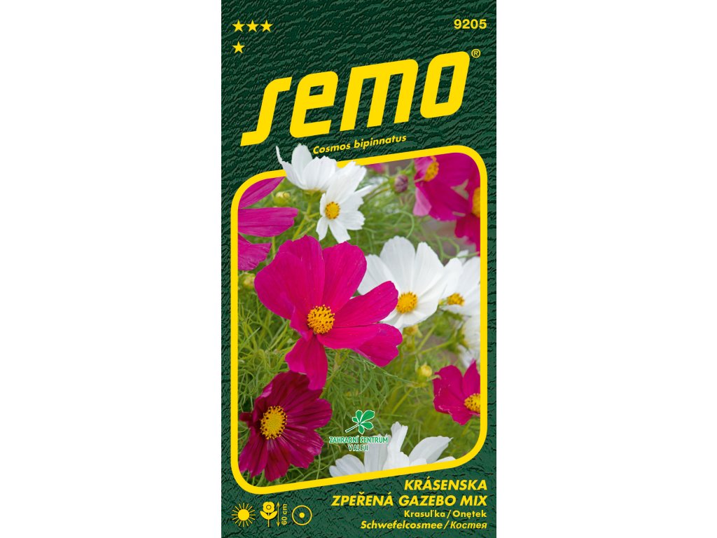 GAZEBO MIX (kód 9205) - Krásenka zpeřená je typickou letničkou venkovských zahrádek, která kvete po celé léto až do prvních mrazíků. Je především součástí letničkových směsí, kde vytváří jemně barevnou škálu středně velkých květů. Rostlina svým habitem nevšedně doplňuje květinové kompozice ve váze a pro její poměrně dlouhou trvanlivost ji můžeme doporučit i k řezu.