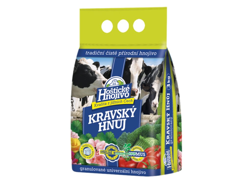 Hoštický kravský hnůj je granulovaný, přičemž granule při styku s vodou bobtnají a tak dochází k postupnému uvolňování živin.