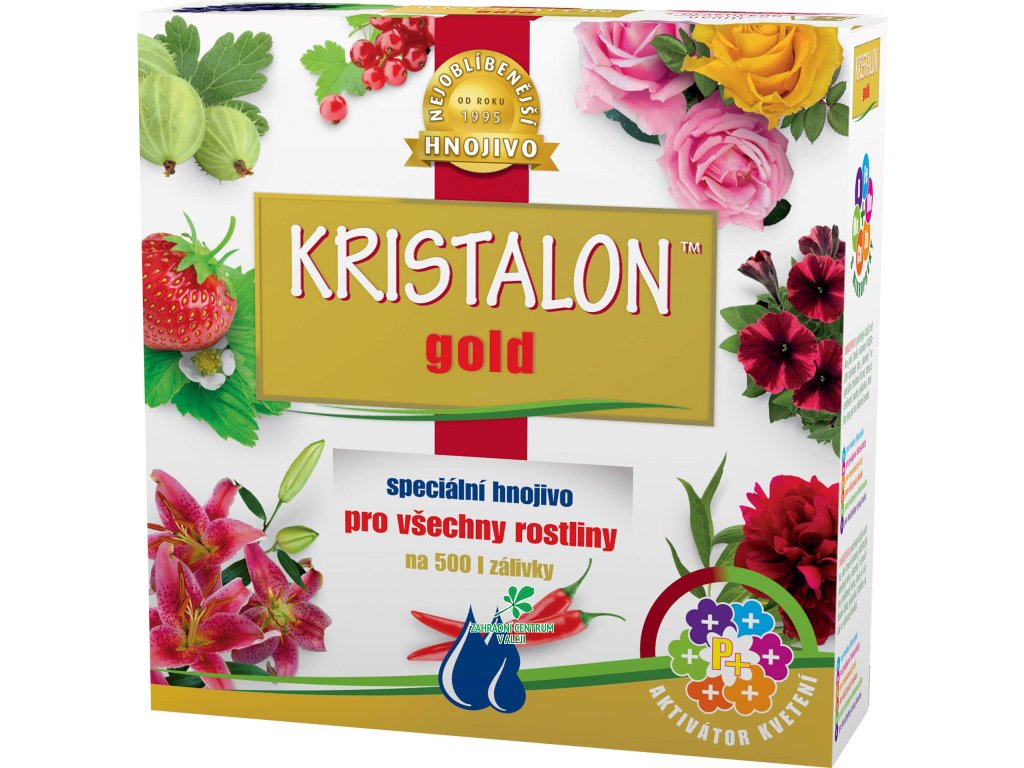 KRISTALON Gold – hnojivo nové generace je krystalické, vodorozpustné hnojivo s unikátním složením a aktivátorem kvetení. Udržuje rostliny stále v intenzívním růstu, zajišťuje lepší a zdravější kořenový systém i celkový stav rostlin, bohatší kvetení a více plodů. Kristalon Gold je univerzálně použitelný pro ovoce, zeleninu, všechny druhy pokojových i venkovních rostlin včetně ovocných stromů a keřů, vinnou révu. Zamezuje žloutnutí listů.