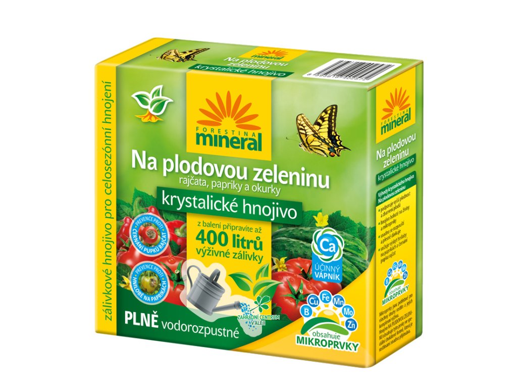 Krystalické hnojivo na Plodovou zeleninu (rajčata, papriky, okurky, aj.) je vodou beze zbytku rozpustné hnojivo, obsahující navíc pro rostliny velmi důležitý vápník.