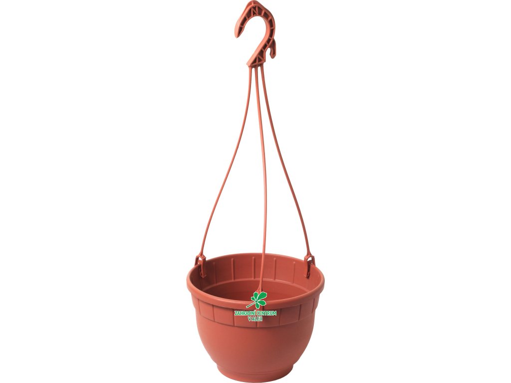 Plastový závěsný květináč s miskou v barvě teracota (včetně plastového závěsu - trojnožky).