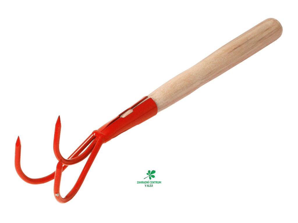 Kypřič tříhrotý s násadou pro kypření i velmi hutné půdy, k provzdušnění až ke kořenům, podporuje růst. Pracovní část je z kovu, násada dřevěná.