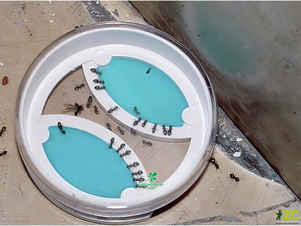 - Mravenci přijímají návnadový roztok velmi dychtivě a transportují ho do mraveniště. Tam jím pak krmí dělnice, larvy i královnu, a tím se vyhubí během 1 až 2 týdnů celé mravenčí společenstvo.