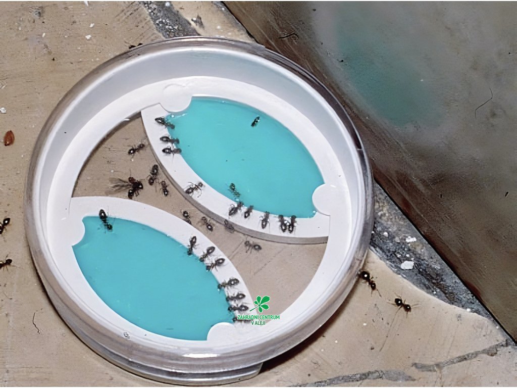 - Mravenci přijímají návnadový roztok velmi dychtivě a transportují ho do mraveniště. Tam jím pak krmí dělnice, larvy i královnu, a tím se vyhubí během 1 až 2 týdnů celé mravenčí společenstvo.