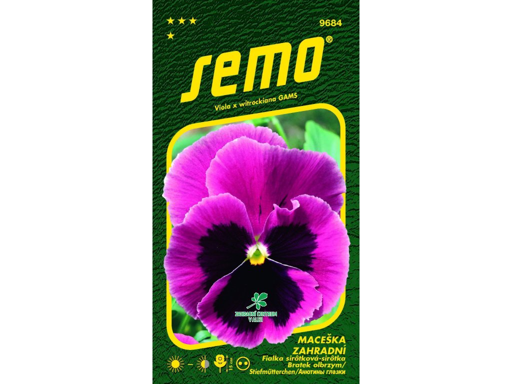 Velké květy růžové barvy s černým okem, výška 15cm. Oblíbená dvouletka používaná pro skupinové záhonové výsadby.