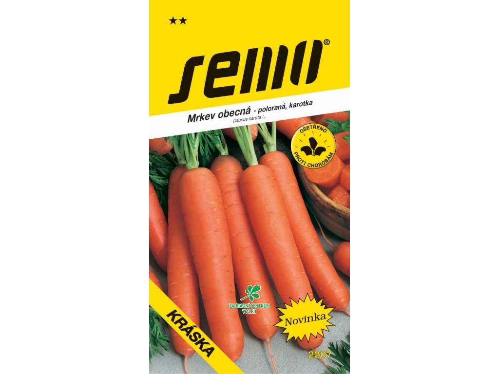 KRÁSKA (kód 2207) - výnosná, poloraná karotka pro letní až podzimní pěstování. Je vhodná na přímý konzum i průmyslové zpracování, pro rané sklizně do svazků, z pozdních výsevů je použitelná i ke skladování. Vytváří dlouhé, tenké, válcovité, tupě zakončené kořeny s dobrým vnitřním vybarvením a úzkou dřeňovou částí. Odrůda je odolná k praskání kořenů a antokyanovému zbarvení hlavy.