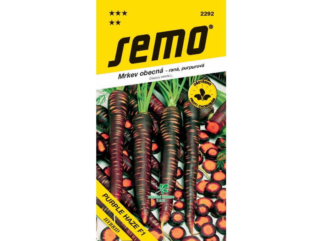 PURPLE HAZE F1 – poloraná purpurová mrkev pro letní a podzimní sklizně. Purple Haze vytváří dlouhé, válcovité kořeny s velmi pěkným vnitřním vybarvením. Korová část je sytě fialová a středová část jasně oranžová. Nať je pevná a robusní. Je též vhnodná pro svazkování. Vegetační doba přibližně 95 dní od výsevu. Výsevek se neliší od ostatních poloraných nenntéských mrkví. Odrůda není náchylná ke zkracování kořenů při vyšším výsevku. Pozor na příliš časné výsevy – při nachladnutí může vybíhat do květu!