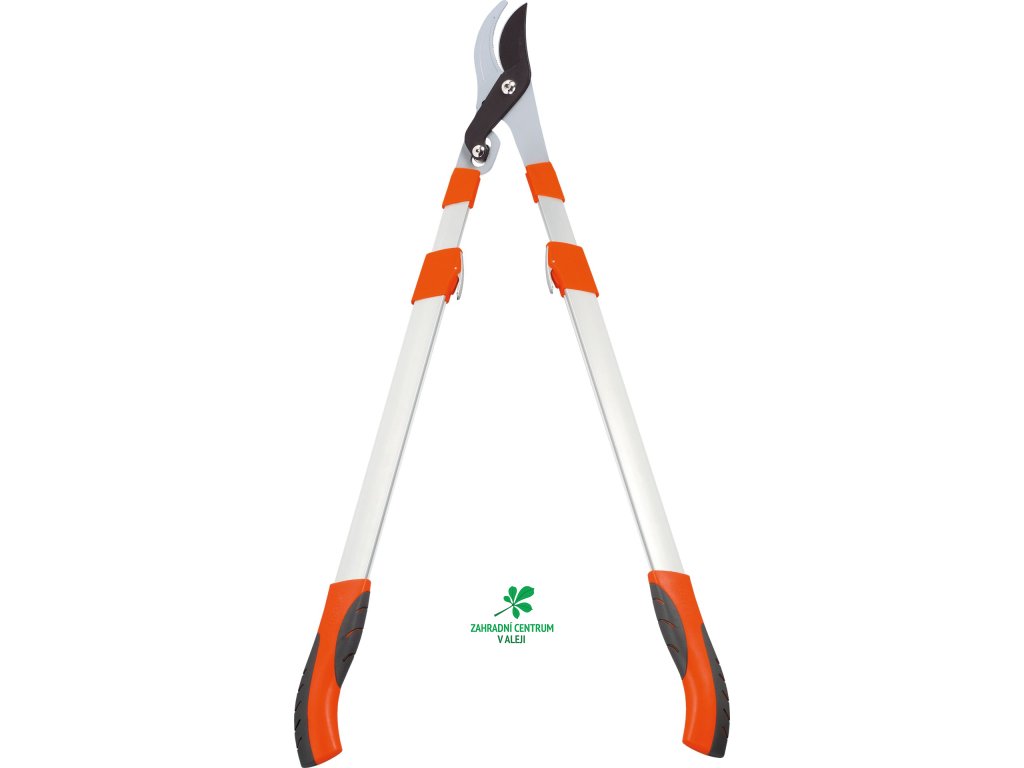 Zahradnické nůžky určené na stříhání větví do průměru 40 mm. Vysoce kvalitní nůžky pro využití v parcích, okrasných zahradách a školkách. Střižné nůžky mají tvrdou chromovanou čepel s teflonovým povrchem s funkcí Bypass. Teleskopická rukojeť v celkové délce 75 – 100 cm. Ergonomicky tvarované rukojeti zajištují protiskluzné držení a bezpečný úchyt. Hmotnost nůžek 1500 g.
