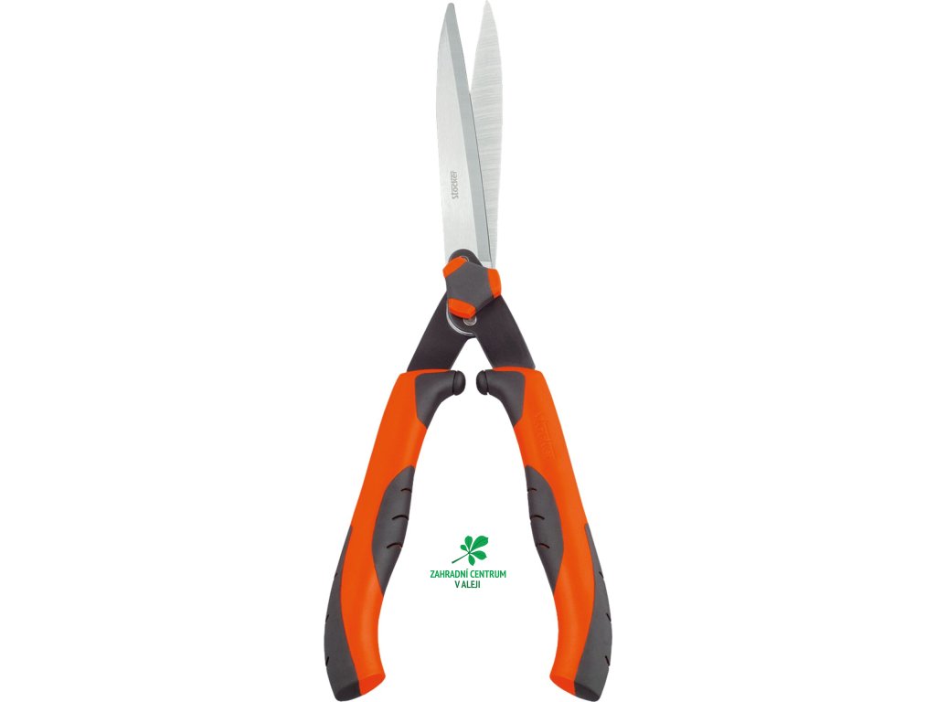 Zahradnické nůžky určené na stříhání živého plotu, úpravu keřů a křovin. Vysoce kvalitní nůžky pro využití v parcích, okrasných zahradách a školkách. Nůžky mají tvrdou chromovanou čepel. Ergonomicky tvarované rukojeti zajištují protiskluzné držení a bezpečný úchyt. Hmotnost nůžek 872 g.
