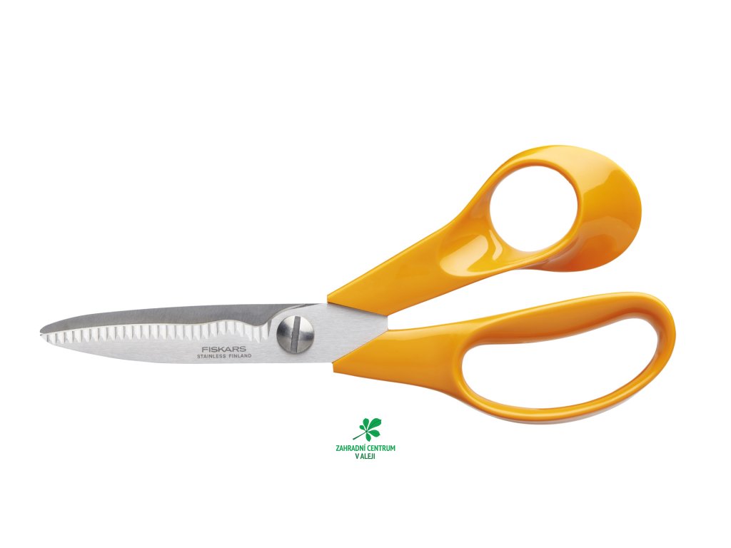 Nůžky se zoubkovaným ostřím zamezuje posun stříhaných materiálů, vhodné pro stříhání květin a bylin.