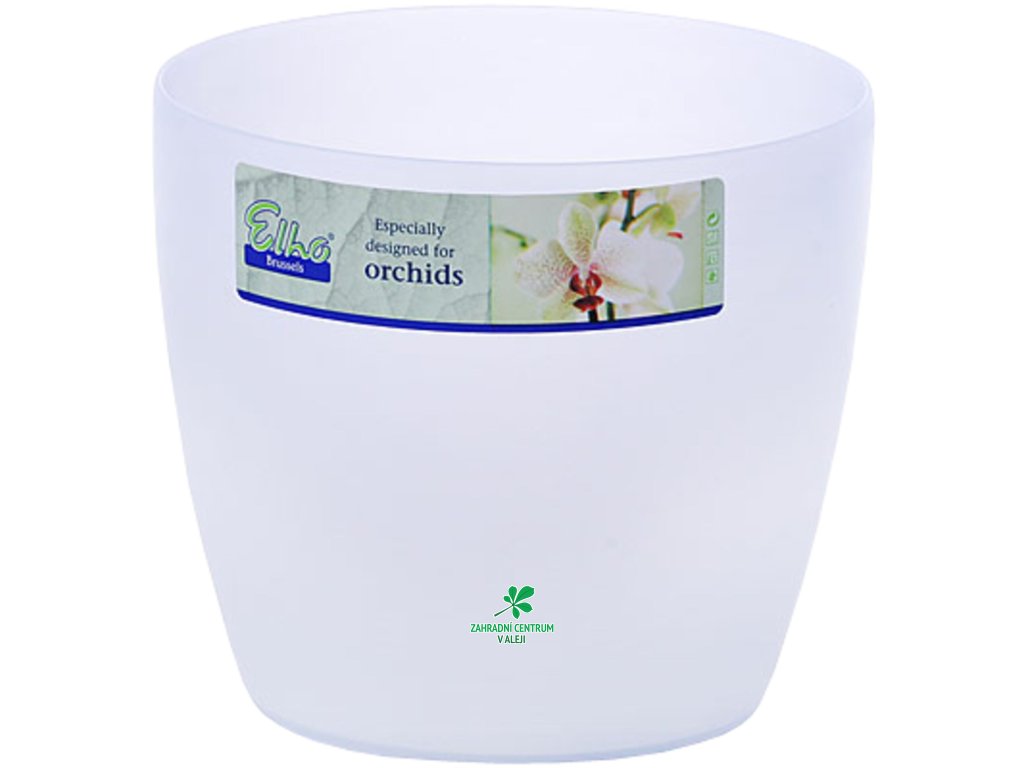 Obal Brussels Orchid je speciální obal pro orchideje od světoznámé firmy ELHO, který svou průsvitnou barvou napomáhá k dobrému růstu orchidejí. Vhodný kontejner do tohoto obalu je kontejner - 14 cm, 1,25 l čirý /500192/.