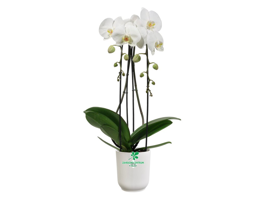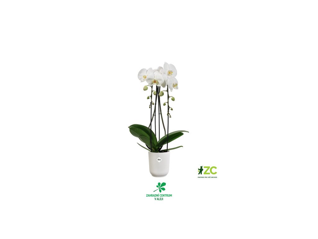 Pokojový květináč ELHO s moderním dekorativním vzorem určený pro pěstování orchidejí.