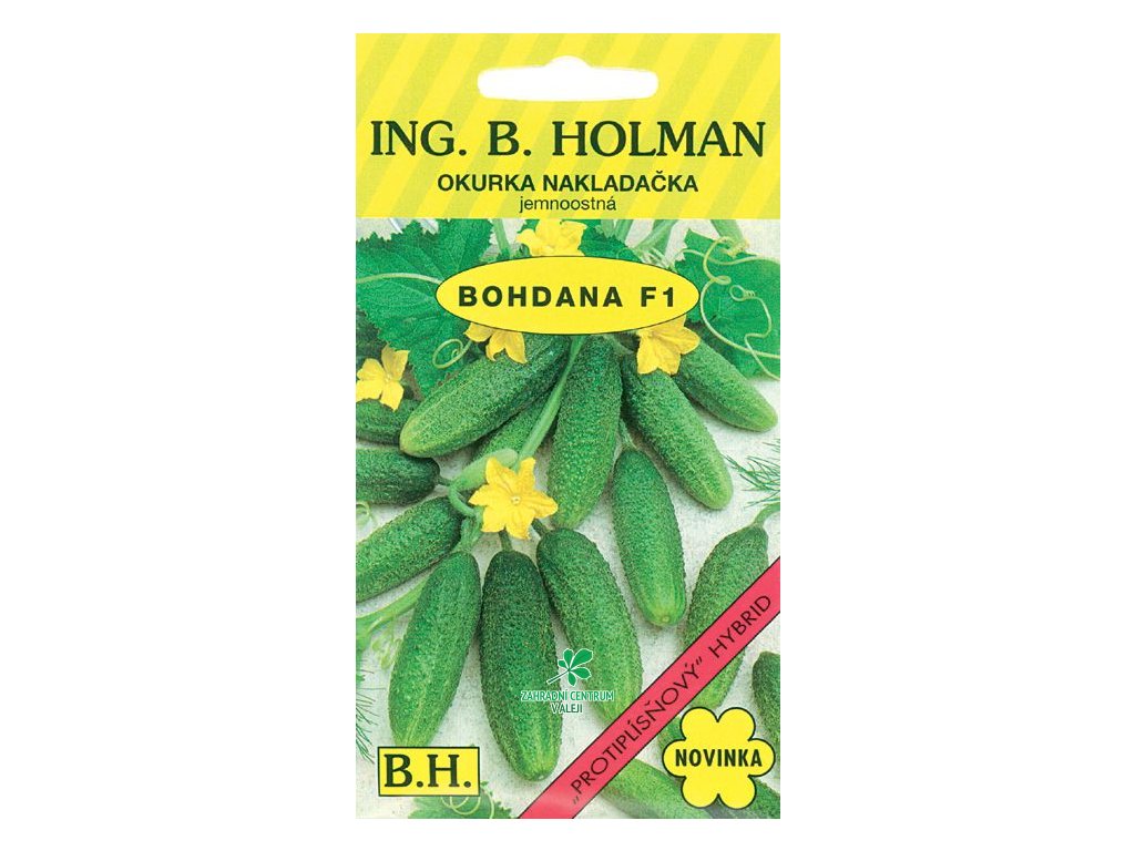 BOHDANA F1 - Kvalitou plodů i odolnostmi k chorobám je podobná odrůdě FATIMA F1, je však ještě o něco odolnější k plísni okurkové a tedy i výnosnější. Geneticky nehořká, převážně samičí.