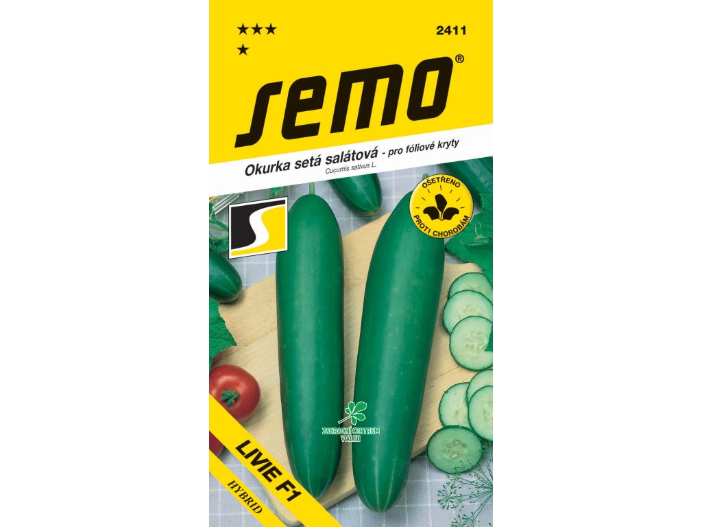 LIVIE F1 – geneticky nehořký hybrid vhodný pro pěstování pod fólií. Plody jsou velké, válcovité, středně zelené. Má pevnou slupku, při včasné sklizni snáší krátkodobé skladování. Netrpí deformacemi. Plod váží průměrně 450 – 550 g. Vegetační doba do první sklizně je 73 dní, celkem 130 dní. Z 10 m2 je možné sklidit 150 – 200 kg plodů. Doporučujeme pro časné jarní přirychlování, je vhodná i pro výsev v polovině června se sklizní v srpnu – září. Nať roste bujně a kvete převážně samičími květy. Není partenokarpická, a proto vyžaduje přítomnost opylovačů.