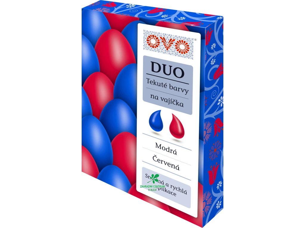 Tekuté barvy na velikonoční vajíčka v DUO sadách modrá/červená - nejrychlejší a praktická aplikace.