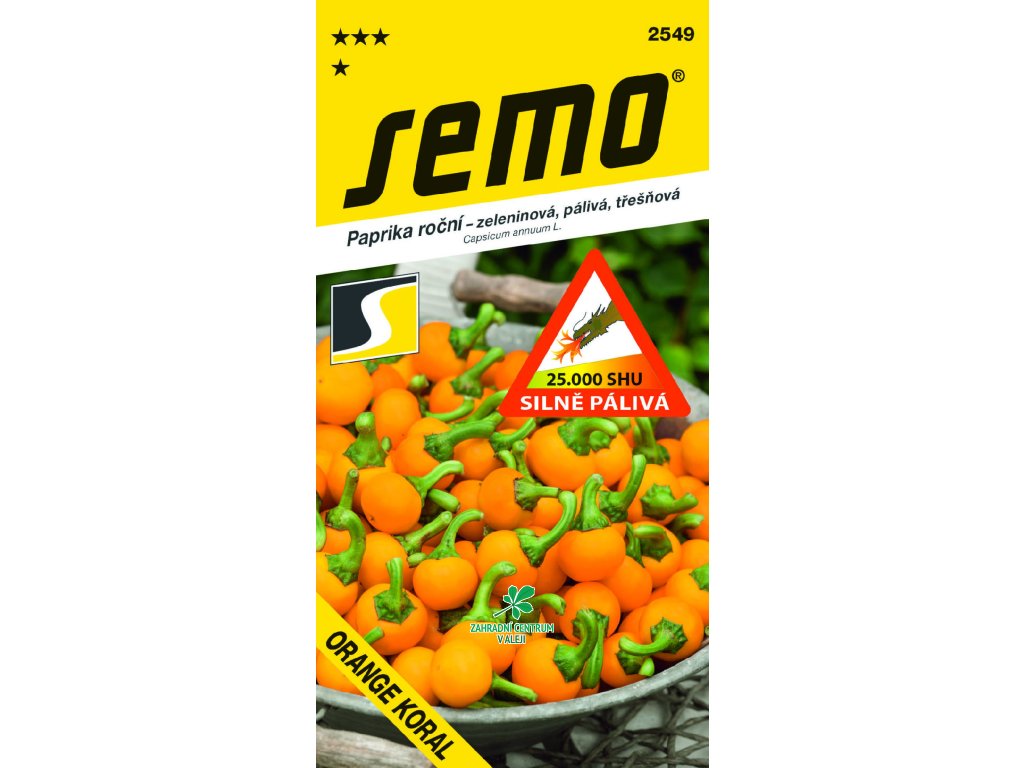 ORANGE KORAL (kód 2549) – Raná, silně pálivá, aromatická kořeninová paprika třešňovitého typu, vhodná k nakládání do kyselého nálevu i jako surovina k sušení, rostlina je středně vysoká.